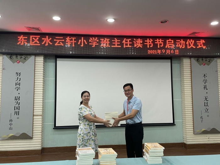 陶行知先生说“先有学而不厌的先生,才有学而不厌的学生”。作为教书人,必须带头做好读书人。班主任是班级德育实践的主力军,是家校沟通的桥梁。为了增强班主任老师们的幸福感和责任感,东区水云轩小学于9月6日举行了班主任读书节启动仪式。