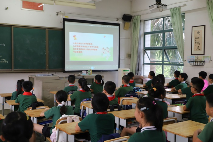 当看到生动有趣的大会报告动画视频时,同学们对习近平总书记“今天做祖国的好儿童,明天做祖国的建设者”、“为建设社会主义现代化强国时刻准备着”的谆谆教导有了更充分而深刻的认识;当说到星空体育身边的少先队员罗悦桐同学这位少代表的事迹时,富有感染力的朋辈演绎和榜样传播,在同学们的心中产生了真挚生动的深层共鸣;当品读到习近平总书记温暖而有力量的贺信寄语时,同学们深深感受到习近平总书记及党中央对少年儿童的深切关怀和殷殷期望。整节课,同学们挺直腰背,认真聆听,心中油然生起一股自豪之情。