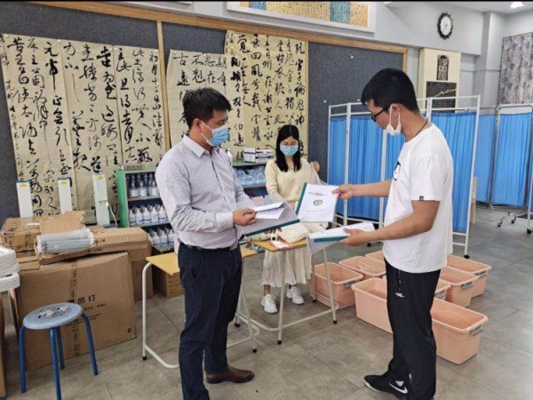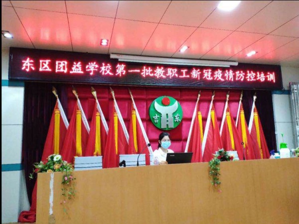 4月13日,陈婷婷老师接到东区教育事务指导中心给她的新任务,前往协助东区团益学校准备物资、设置临时隔离区、健康观察点,参加应急演练,迎接返校前上级单位的各项检查,给初三返校教职工开展新冠肺炎疫情防控知识讲座,给保洁人员、食堂工作人员讲解消毒剂的配制等。