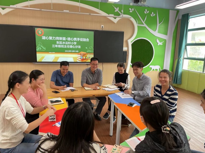班主任是学校德育工作的灵魂,是助力学生成长的核心力量。10月10日—28日,为了解各班级需要关注的学生情况,帮助解决班主任在个人及班级管理中的困境,在学校德育处的组织下,心育科组开展“凝心聚力育新苗,德心携手促融合”为主题的班主任德心沙龙活动。沙龙历时三个星期,一至六年级共分六场进行。参与会议的除了各年级班主任、心育科组全体成员外,学校德育处副校长黄文灿、各年级的落级行政和级组长也出席会议。