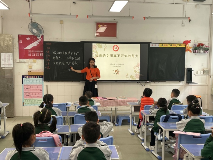 为积极响应全市全力争创全国文明典范城市的号召,推动创建行动迅速掀起热潮,充分展示东区水云轩小学少先队员在争创全国文明典范城市中的良好形象。2023年3月6日,东区水云轩小学各班开展“城市的文明离不开你的努力”主题班会。