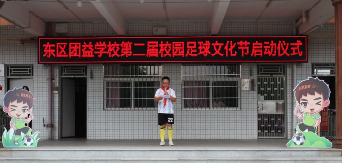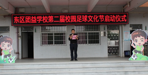 主持人罗老师介绍学校足球文化;副校长肖春来致辞,他鼓励同学们要抓住这一年一次的好机会,积极参加各项赛事活动,充分展示自我、锻造自我、悦纳自我,感知足球文化,领略足球精神;学校足球队的刘宇凡同学代表全体同学宣誓,保证以积极饱满的态度参加这次足球比赛,展现出团益学子团结拼搏的精神面貌,遵守比赛规则,坚持“友谊第一、比赛第二”的原则,认真踢好每一场比赛;校长李练君宣布“中山市东区团益学校第二届校园足球文化节”正式启动。