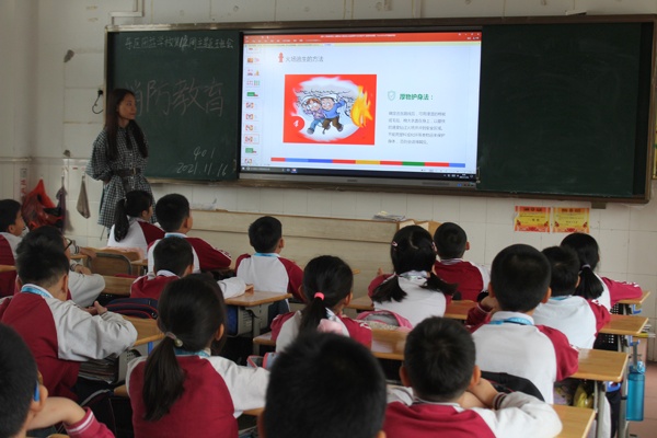 11月16日,团益学校利用班会课开展消防安全教育主题班会。内容有防火安全教育、注意电器火灾和“我来考考你”三个环节。