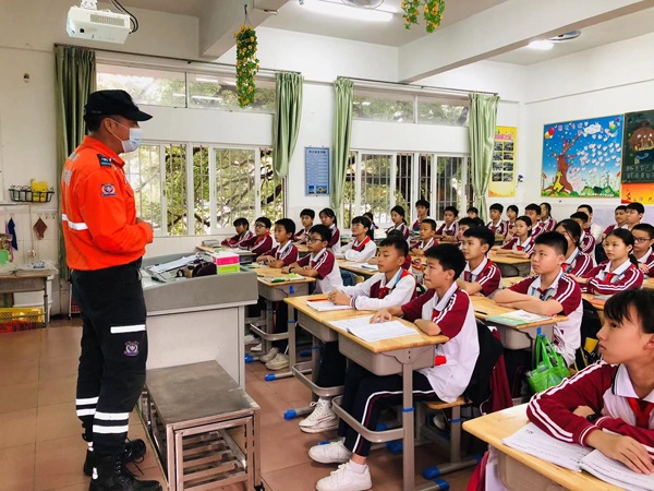 进入活动第一环节,“应急进社区,安全知识入人心”防灾减灾演练活动,在班级课室内普及火灾逃生知识现场教学。邀请到中山市青年志愿者协会(中山市义务工作者联合会)直属队伍——市应急志愿服务总队拟开展平安使者——应急自护及防灾减灾演练进校园活动,推广普及应急救援知识,增强共青团员应急自护能力。