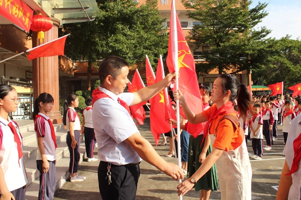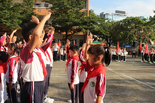 最后,由大队辅导员刘丹老师的带领全体队员呼号: “时刻准备着……”一字一句铿锵有力,充分显示了作为社会主义事业接班人的信心和决心。