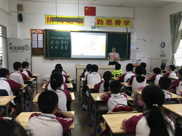 班会课上,班主任通过图片和视频,让学生了解粮食的生产过程,给大家讲勤俭节约的故事,计算节约粮食经济账,使学生们深刻了解到每一粒粮食的来之不易,知道了粮食的重要性。还观看了“节约粮食,反对浪费”的公益宣传片,并学习了中山市教育和体育局关于“节约粮食、反对浪费”的倡议书。号召学生厉行节约,从我做起,从一日三餐做起。珍惜每一粒米,不偏食,不挑食,不暴饮暴食,无论是在校内、校外、家庭就餐,都应该不挑食,不剩菜剩饭,让“光盘”成为时尚,争做爱粮节粮的践行者。