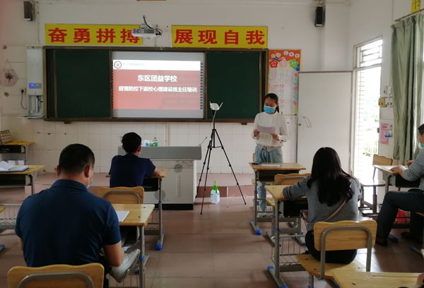 4月26日下午,东区团益学校召开学生返校防控工作第三次培训及疫情防控下返校心理建设班主任培训会,行政、助理以及初三全体教师参加。