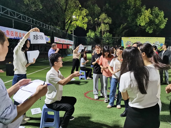 为增强全体教职工的凝聚力、战斗力,建设和谐、合作团队,创建文明校园,彰显工会组织在学校发展中的协调、促进作用,培养全体教职员工良好的归属感、幸福感,2022年11月16日晚上,团益学校组织全体教师在学校足球场开展团康活动。本次活动由学校工会委员会组织,由心理健康老师戴婉柔老师主持。
