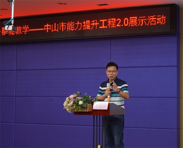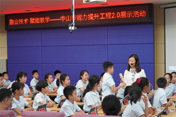 信息技术应用能力是新时代高素质教师的核心素养。为了总结提炼中山市能力提升工程试点校的研究经验和成果,发挥中山市能力提升工程试点校的示范引领作用,2021年10月15日,东区雍景园小学承办了主题为“融合技术·赋能教学”的中山市能力提升工程2.0现场展示交流和线上同步直播活动。中山市能力提升工程2.0办公室吴寒冬主任、中山市能力提升工程2.0办公室陈明宏副主任、中山市教育教学研究室英语学科教研员辛键老师、东区街道教育和体育事务中心教研员谭鹏老师、东区负责能力提升工程2.0的行政、东区学科骨干教师、东区雍景园小学欧淑霞校长、张卉丹副校长以及线上的5000多名教师参加了本次混合式交流展示活动。本次活动包括课例展示、交流分享和专家点评三部分。