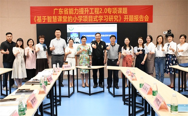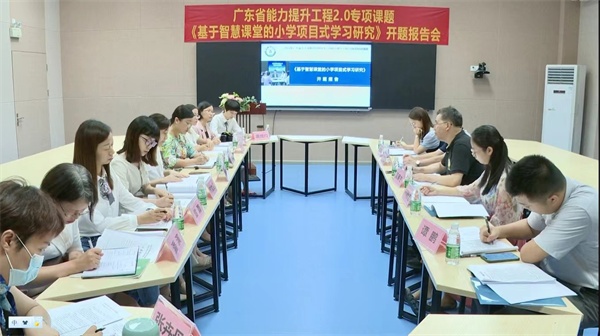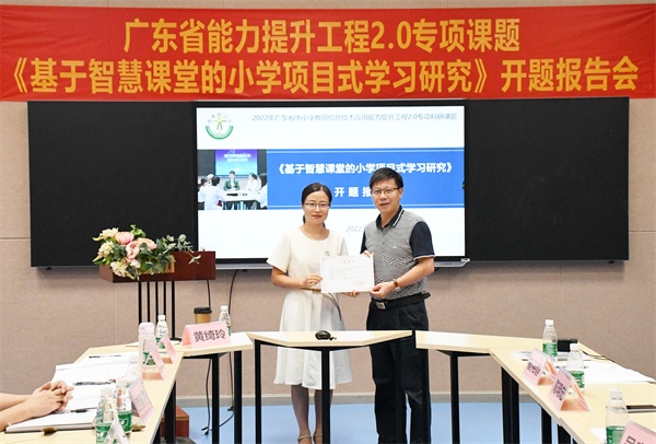 绿树阴浓夏日长,课题延展入学堂。为了促进信息技术与教育教学融合创新发展,推动学校的信息化教学模式从多技术型走向智慧型,东区雍景园小学宋晓玉主任成功申报了2022年广东省中小学教师信息技术应用能力提升工程2.0专项科研课题《基于智慧课堂的小学项目式学习研究》。6月29日下午,该项课题在东区雍景园小学二楼录播室进行了开题报告会。