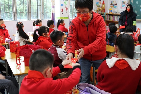 思政课后,派红包环节将开学典礼的气氛推向了高潮。伴随着喜庆的音乐,老师们将满含祝福的红包一一派发给孩子们。带着这份特殊的红包祝福,同学们再次重温竹苑小学誓词,牢记自身使命。开学典礼也在整齐响亮的宣誓声中落下了帷幕。竹苗拔节声声脆,瑞虎欢腾步步高。在新的一年里,竹苑小学全体师生将积极向上、努力拼搏,以实际行动抒发爱国情感,弘扬爱国传统!