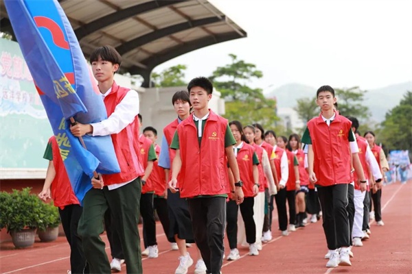 伴着雄壮有力的运动员进行曲,解说铿锵有力,气势磅礴。在国旗队的引领下,鲜花彩旗方阵、班级方阵、教师方阵依次走过主席台。他们步伐矫健,口号嘹亮,展示充满创意,充分展现了远洋学子不断进取、强国有我的精神风貌。