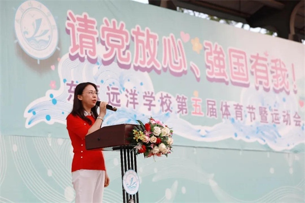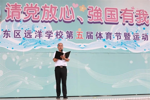 中学部党支部书记、副校长宋旗芬在致词中阐述了校运会的意义,并希望每位运动员精神饱满,斗志昂扬,努力拼搏,赛出风格。运动员、裁判员代表先后发言并进行了庄重的宣誓。学校党总支书记,校长许岚宣布:东区远洋学校“请党放心 强国有我”体育节暨运动会开幕 !