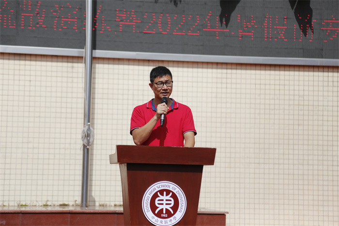 接着,蔡主任对全体同学进行了2022年暑假前安全教育。他就疫情防控、交通安全、防溺水安全、饮食安全、用电安全、消防安全、网络安全、打工安全、预防中暑等方面为进行了安全教育。重点强调了防溺水安全,要求学生做到不到无安全设施、无救援人员的水域游泳,不到不熟悉的水域游泳。发现同伴溺水,立即寻求成人帮助,不手拉手盲目施救,要智慧救援。