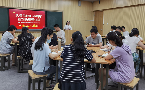 随后,王颖丽同志通过丰富的数据介绍了香港回归祖国以来所取得的举世瞩目的成就,并带领大家深入学习了习近平总书记在庆祝香港回归祖国25周年大会暨香港特别行政区第六届政府就职典礼上的重要讲话精神。她指出,香港回归25年的发展历程,充分证明了“一国两制”政策是香港保持长期繁荣稳定的最佳制度,更是党处理复杂国际问题和内政问题时的大智慧与战略定力的集中体现。香港回归25年的风雨历程同样是一堂生动形象的历史课和思政课,作为党员教师,星空体育要围绕立德树人根本任务,讲好“一国两制”成功实践的香港故事,引导学生厚植家国情怀,以史为鉴,开创未来。