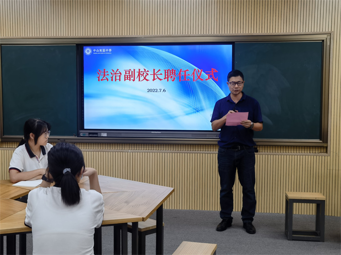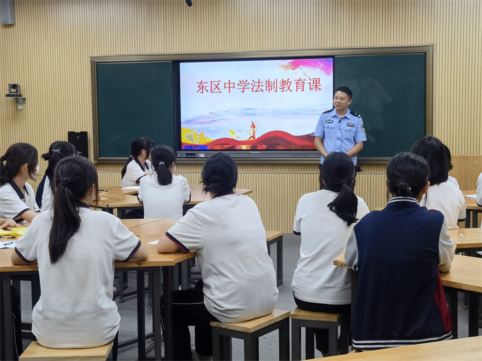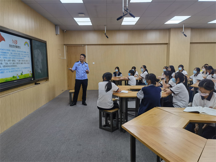绿树荫浓夏日长,法治安全需常谈。为进一步增强学生的法治安全意识,提高学生遵守法律法规的自觉性,同时预防未成年人犯罪,全力保证学生的生命安全,努力创建文明、和谐、平安的校园环境。2022年7月6日,中山市东区中学携手紫马岭派出所为全体同学开展法治教育讲座,本次讲座由德育处蔡昌盛主任主持,紫马岭派出所张启程副所长主讲。