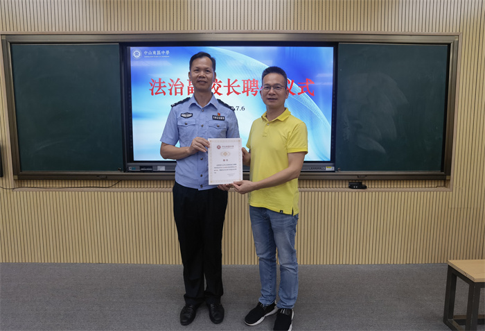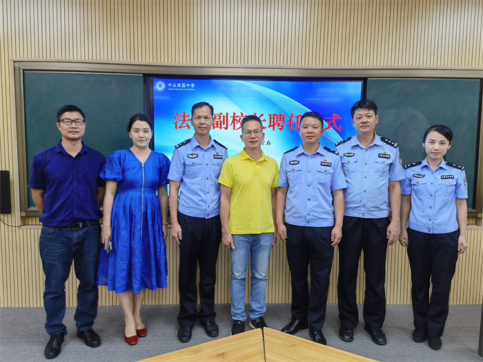 在讲座开始前,东区中学谢柏芳校长为紫马岭派出所李子余副所长颁发聘书,聘请李子余副所长为我校法治副校长。