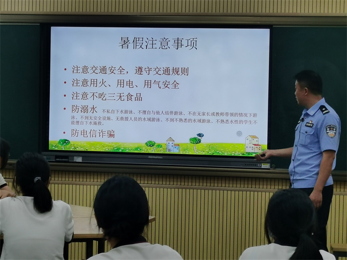 讲座的最后,张启程副所长提醒同学们在暑假期间要注意交通安全,遵守交通规则;注意用火、用电、用气安全;不吃三无食品;防溺水 ;要时刻防电信诈骗。同学们表示张警官为星空体育的暑假给出了很好的建议和要求,特别是防溺水、防电信诈骗等,纷纷表示要把张警官的建议牢记于心。