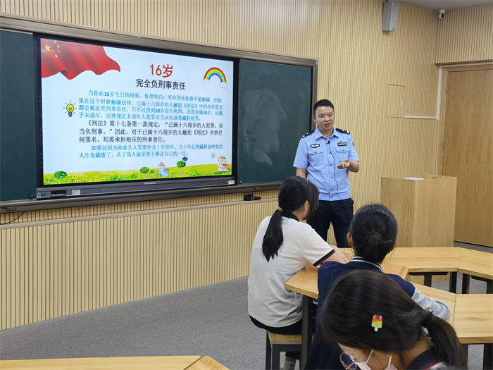 张启程副所长在讲座中结合宪法、民法典、刑法、治安管理处罚法、道路交通安全法等法律法规中与年龄息息相关的法律条文,围绕未成年人不同年龄阶段涉及的法律权利、义务、责任,以案释法、以事释法,让参与讲座的同学们了解民事责任年龄、行政责任年龄和刑事责任年龄,让他们意识到做一名遵纪守法的公民的重要性。希望同学们在日后遇到法律问题时,也能通过法律手段维护自身的合法权益,行使法律赋予的权利,履行法定义务。