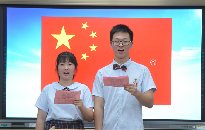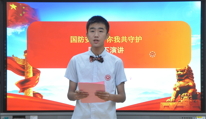 活动第一项,举行“铭记历史 勿忘国耻”主题升旗仪式。伴随着庄严的《义勇军进行曲》,鲜红的五星红旗冉冉升起,师生们齐唱国歌,肃立默哀,表达对烈士的崇高敬意和深切怀念。升旗仪式结束后,高二6班李君霖同学作了题为《国家安全 你我共守护》的国旗下演讲,倡议大家学习国防知识,增强国防观念。