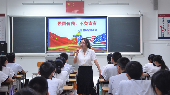 班会课上,有的班主任老师通过回顾历史,从“九一八”事变展开论述;有的班主任则通过展示时事新闻,从佩洛西窜台开始讲起。班主任们从国防安全的含义、国防安全教育意义、国防安全事件、现代化国防建设等多个维度引导学生了解国防安全的重要性。
