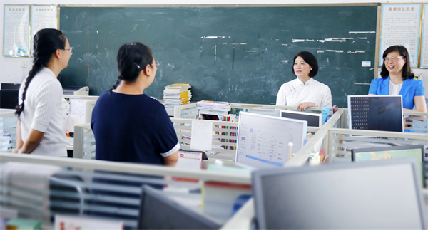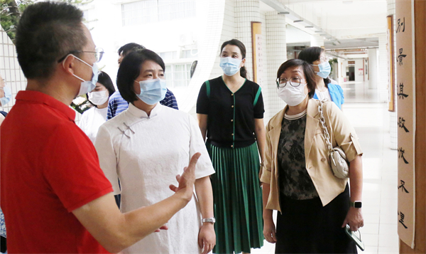 随后,冯金怡副主席一行走进教师办公室,看望慰问正在备课的一线教师们。“祝老师们教师节、中秋节快乐,感谢你们对教育事业的付出和贡献!”看到一个个充满青春朝气的老师,冯副主席坦言自己一下子回到了当年从教的时光,虽然工作有变动,但自己对教育始终念念不忘,始终关注教育,倾情教育,虽然自己不在教育岗位上,但在工作中愈发感受到教育的重要、教师的伟大。走访中,市、局领导与教师们亲切交谈,聆听教师心声,送上市委、市政府的关怀与问候。