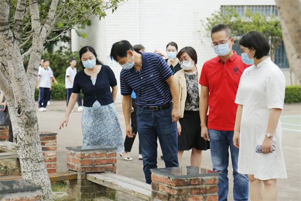 在学校领导班子的陪同下,冯金怡副主席一行沿着校道实地查看了学校设施环境。在学校庭院的芭蕉树下,冯副主席饶有兴致地介绍道:这是大蕉,那是粉蕉,远处的是皇帝蕉……她表示,想不到学校在这么小的空间里,栽种了富有当地生活气息的果树和植物,让孩子们可以在下课之余放飞心灵,寻求精神慰藉,这是很好的教育设计。