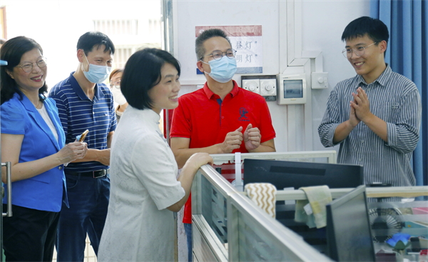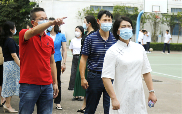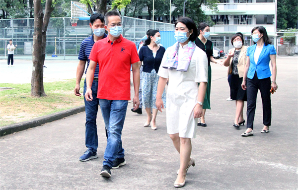 巡视校园期间,冯金怡副主席还听取了谢柏芳校长关于学校办学情况的汇报。谢校长向市、局领导介绍了学校的基本情况以及学校发展存在的难点和焦点问题。冯金怡副主席对学校的创新发展理念和近年来取得的进步给予了高度肯定,她说:“学校虽小,但很精致,很有内涵,东区中学为中山孩子们做出了很大的努力。”针对学校发展中遇到的困难,特别是学生宿舍、功能场室不足等问题,她表示,将进一步深入调研了解情况,积极同各级领导和相关部门认真研讨,努力推动落实解决。她勉励学校领导班子,教师是学校发展的第一资源,要切实关心、关爱教师,在有限的条件下,努力探索为教师创造良好的工作、学习和生活条件,让教师安心从教、潜心育人,推动学校教育教学质量再上新台阶。