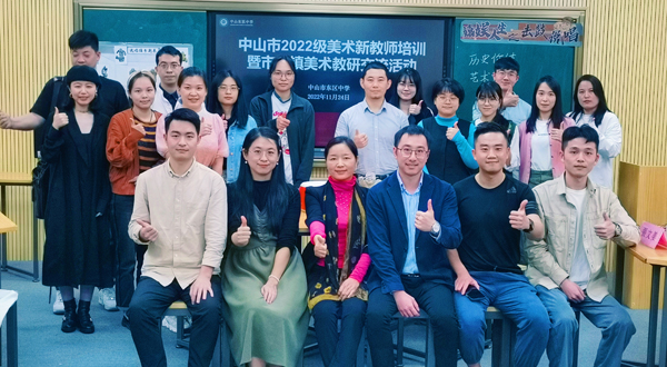 2022年11月24日下午,中山市2022级美术新教师培训暨市、镇美术教研交流活动在中山市东区中学顺利举行,东区中学副校长周雨寰、中山市名教师刘坚工作室成员、中山纪念中学集团化美术教研组长张宝峰、中山纪念中学集团化学校、中山市濠头中学以及东区中学美术科组、传统文化科组等美育骨干教师出席了本次教研活动,因疫情防控要求,2022级美术新教师分别以线上与线下相结合的方式参与本次交流与学习。