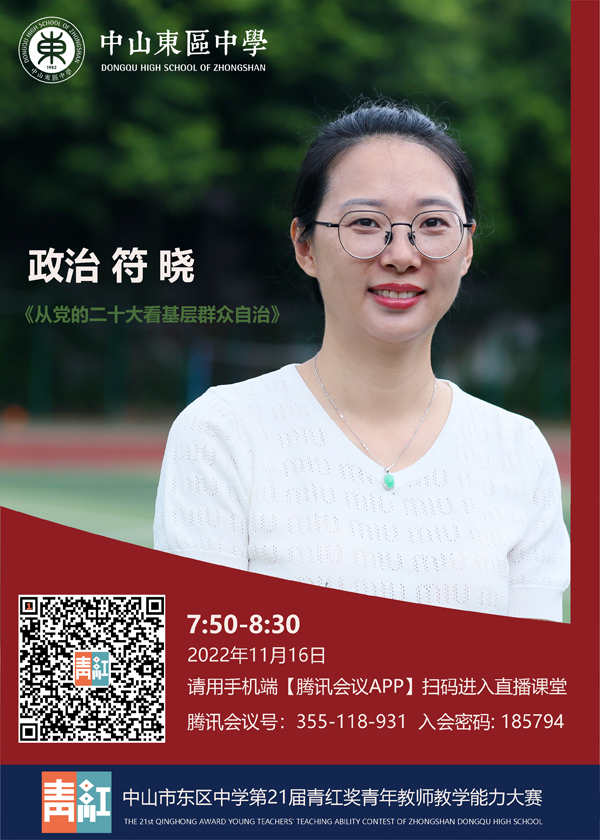 中山市东区中学第21届“青红奖”青年教师教学能力大赛邀请函