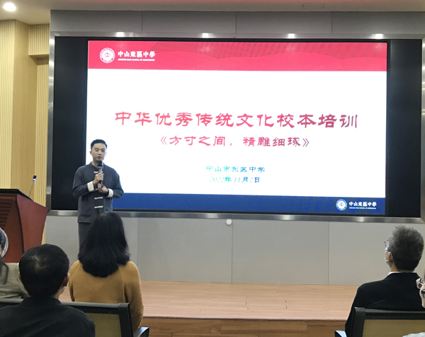 2022年11月7日下午,中山市东区中学中华优秀传统文化中心教研组在报告厅面向全体教师开展了一场别开生面的校本培训。
