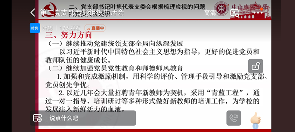 2023年1月5日,中山市东区中学第二党支部在钉钉群召开2022年度专题组织生活会,并对支部全体党员进行民主评议。会议由党支部书记叶隽主持召开。