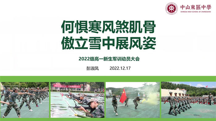 为了顺利开展2022级高一新生军训活动,2022年12月17日晚上7:30,我校借助钉钉平台举行了线上军训动员大会,会议由高一年级德育主任彭淑凤老师主持和召开。