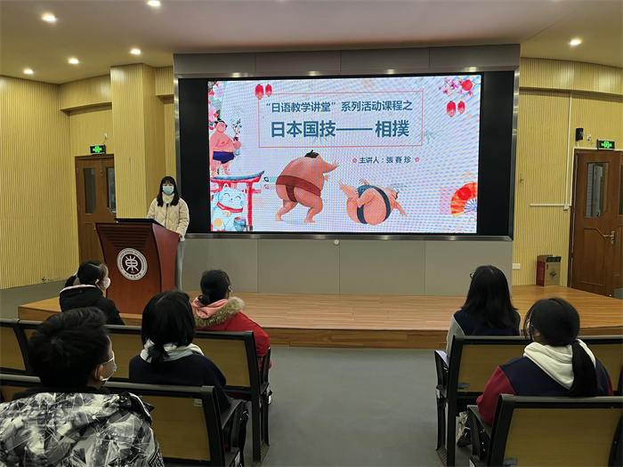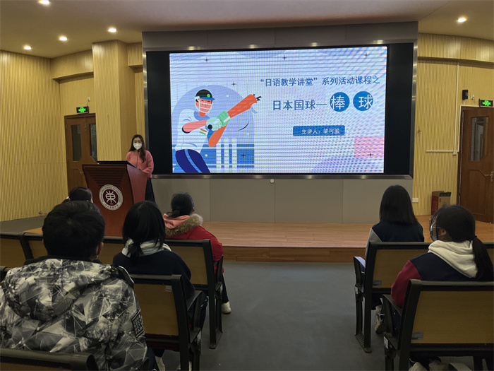 此外,为丰富校园文化生活,发掘学生课外兴趣,打造日语教学的第二课堂,梁可盈老师和张赛珍老师在会后分别继续开展“日语教学讲堂”系列活动课程——棒球文化和相扑文化。梁可盈老师指出,棒球运动是被誉为最讲礼仪、最讲感恩的运动。棒球精神与中国文化在无形中达成了一种契合。希望大家能够感悟棒球精神,学会感恩、守规矩、讲礼貌。张赛珍老师通过有趣的视频和图片带大家走入相扑的世界,带领大家深入地了解蕴含在相扑背后的体育竞技精神。
