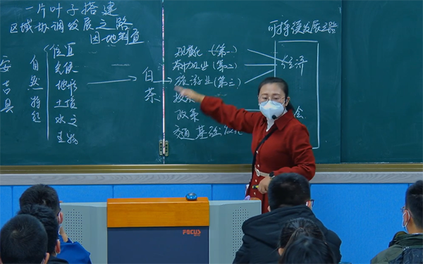 赛场上,史雪娇老师为学生带来了《一片叶子搭建区域协调发展之路》课例展示。史老师以安吉白茶为探究对象,激发了学生的探究热情。探究过程中,从“白茶安家”入手,带领学生归纳自然地理要素。随后,史老师引导学生从白茶规模深加工等方向入手,探究白茶可持续发展的方向,从产业的发展前景与生态环境出发进行小组讨论,培养学生的人地协调观和独特地理视角。屏幕前,我校教师认真观摩同行课例,书写听课记录并相互交流。史老师在赛场上的精彩表现受到大家的一致好评。