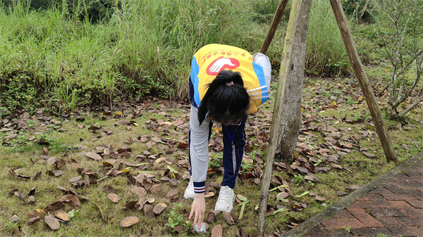 学员们认真检查草丛中,石缝里,将发现的矿泉水瓶、易拉罐、烟头、塑料袋分门别类地装到垃圾袋中,所到之处绝不遗落一处垃圾杂物,下山后准确无误地丢到山下的垃圾桶中。
