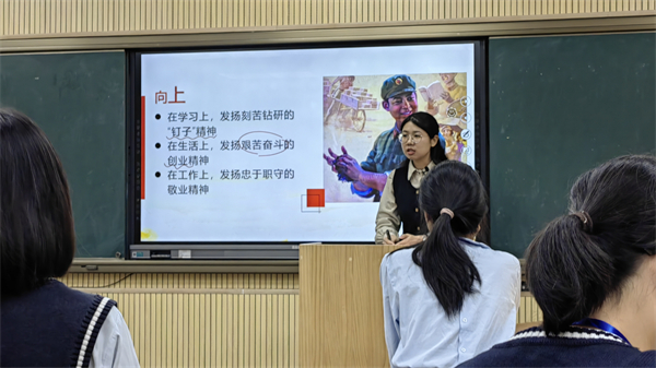 学习雷锋同志“向上”的人生姿态,郑老师结合生情、校况,引导同学在学习上,发扬刻苦钻研的“钉子”精神,以“挤”“钻”的劲儿,克服各种困难;在生活上,发扬艰苦奋斗的创业精神,提醒同学们要保持朴素的优良生活作风,勤俭节约,艰苦奋斗;在工作上,发扬忠于职守的敬业精神,启示同学们脚踏实地,求真务实,努力做好本职工作,将小我融入大我,实现自我价值与社会价值的统一。