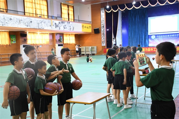 为发挥能力提升工程2.0试点区和试点校示范引领作用,探索智慧教育环境下体育学科的教学模式,促进信息技术与教育教学融合创新发展,2022年9月28日上午,东区雍景园小学承办了主题为“智慧领航·创新课堂”的中山市能力提升工程2.0体育学科典型课例的展示交流活动,并进行了现场直播。广东省教育研究院体育教研员肖建忠博士、中山市能力提升工程2.0办公室吴寒冬主任、中山市教育教学研究室教研员陈明宏老师、中山市教育教学研究室兼职体育教研员李涛老师、中山市教育技术中心陈志豪老师、东区街道教育和体育事务中心体育教研员梁国来老师、东区雍景园小学欧淑霞校长、东区各学校体育老师以及线上的老师参加了本次活动。