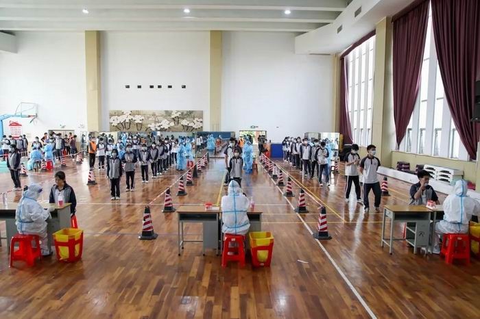 上午8点整,所有工作人员已就位,严格按照防护要求分类着装。8点10分,工作人员首先完成了采样。之后按照工作安排,全体教职员工完成采样。紧接着,高三、高二、高一学生按照班级顺序,在班主任、班委组织带领下,分班依次间隔一米排队进入检测现场、出示检测码、核酸采样,整个过程井然有序,采样结束后按指引有序离开。两个半小时,就完成了全校2340多名师生员工的采样。