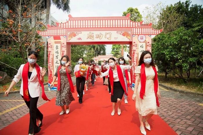下午两点四十分,高三学子整肃在学校广场,分班依次穿过“成人门”,走上红地毯。全体高三老师列队两侧,双手为刚刚跨过成人门槛的学子们披上红色围巾,欢送他们穿越“成功门”,登上“十八岁成人礼暨高考动员大会”的主会场。