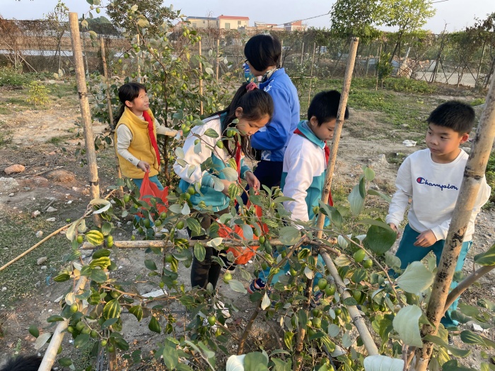 12月31下午,中山市阜沙镇丰联小学全体学生在学校领导以及各班班主任带领下,来到学校红领巾劳动实践基地进行了清理杂草、果苗维护及采摘成熟蔬果的劳动实践活动。
