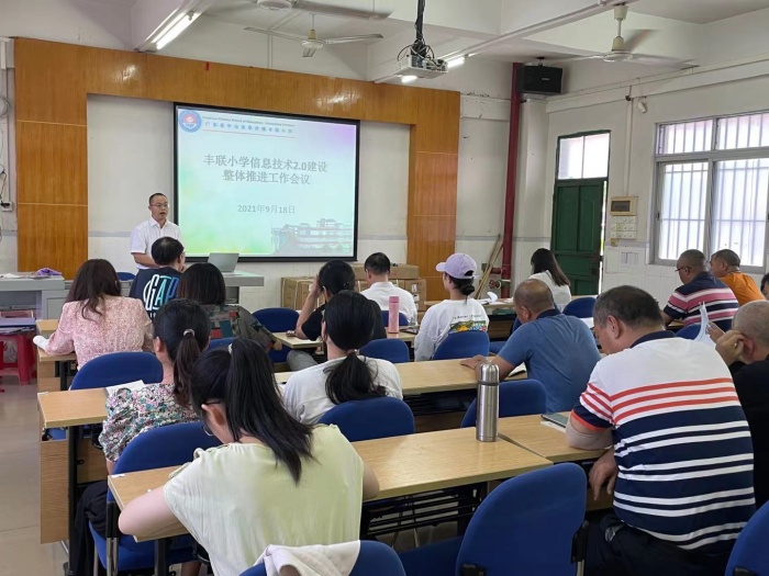 为了进一步推进学校的教育信息化建设目标,提高全体教师的信息技术与学科深度融合能力、信息化教学创新能力,全面改进学校信息化管理,促进学校信息化水平的有效提升和整体发展。2021年9月18日下午,中山市阜沙镇丰联小学在阶梯教室开展教师信息技术应用能力提升工程2.0项目推进工作会,会议由教务处李宗恳主任主持,全体教师参加。