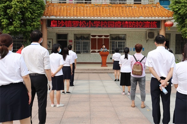 通过实战演练,师生们明晰了责任、熟悉了程序、规范了操作。演练结束后,阜沙镇罗松小学梁柱明校长、卫生副校长杨洁炜医生对本次演练进行总结和点评。最后,镇文教卫计局黄桂生局长做出点评,认为该校教师对应急处理的流程掌握较熟练,并勉励广大教师要严格排查问题,彻底消除防控死角,为校园疫情安全保驾护航。