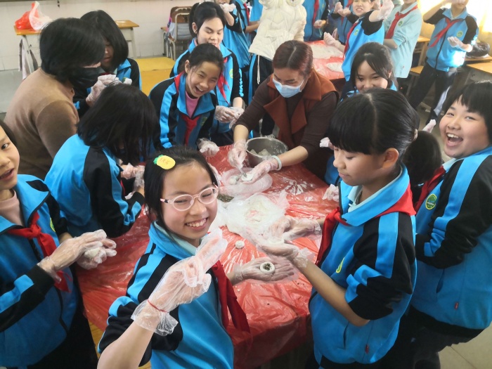 有趣地猜灯谜之后,孩子们回到班级,和家长志愿者、老师一起,体验做汤圆的乐趣。孩子们搓、捏、按、团,做成一个个香甜诱人的汤圆,分享团圆的味道,传达元宵佳节的祝福与心愿,感受到了中华民俗的独特魅力。