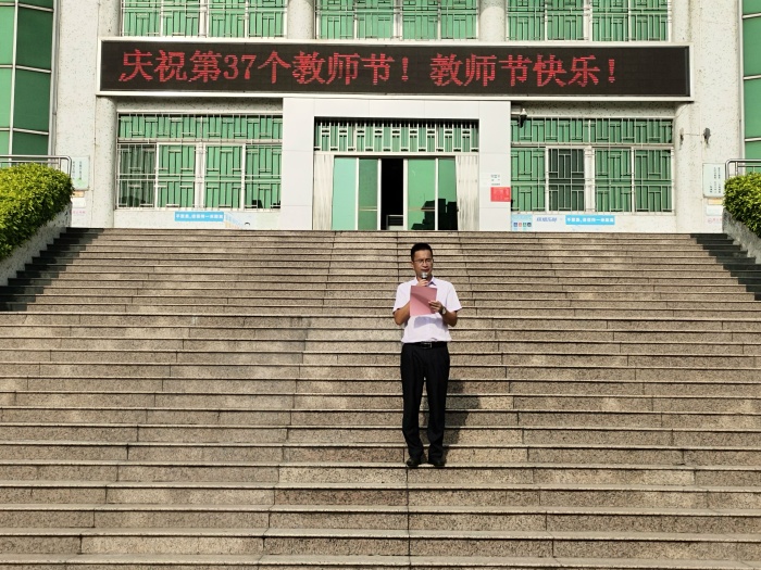 活动共分为三个环节,第一环节是梁柱福校长为活动致辞,他首先代表学校向默默耕耘,无私奉献的全体教职工致以崇高的敬意和衷心的感谢,紧接着他宣读了《牛角小学绿色教师节倡议书》,在倡议书中梁校长强调教师不仅是知识的传播者,更是道德的塑造者。教育事业的蓬勃发展,孩子们的成长成才,都需要教师树立榜样。他希望牛小学子要将“做最好的自己”的信念落实到日常学习、生活中,用良好的品德和综合素质的提高表达对老师的尊重与热爱。