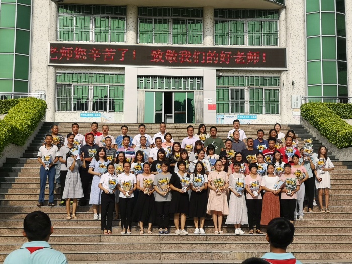 第二环节由学生代表表演了歌舞节目《听我说谢谢你》,孩子们以歌传情,赞美了老师默默耕耘,无私奉献的精神,把最深的祝福送给老师,向老师表达无限感恩之情。第三环节是各班学生代表给全体老师们送上鲜花及节日的问候。