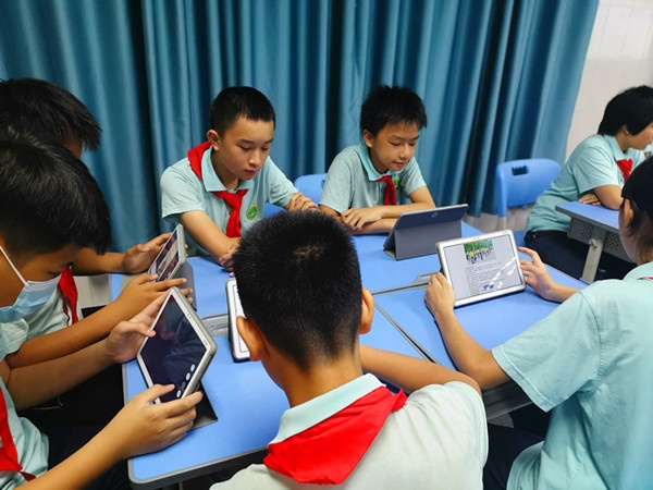 第一环节由阜沙镇科学学科带头人马成海副校长上展示课,课题是六年级科学《网上学习——我的绿色生活》。马校长利用信息技术,指导学生通过平板机进行网上学习,从选定主题、搜集信息、上传资料、交流学习四个环节进行教学。他指导学生如何选定主题,如何围绕主题利用网络搜集信息、处理信息,并在此过程中了解为什么要进行垃圾分类,减少废弃物,重复利用物品以及循环再造可回收物等知识;同时初步认识一次性用品对环境的危害,重点引导学生如何去表达交流分享,并在此过程中懂得人与环境密切相关,进而在日常生活中践行绿色环保的生活理念。整节课马校长把信息技术与教学深度融合,培养学生借助网络学习的方法和习惯。