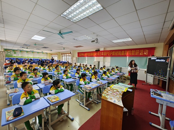 为了进一步提高阜沙镇小学英语教师的教材开发与应用能力,研究三年级人教版(PEP)教材与课堂实践策略,探索有效的课堂教学模式,解决教师在英语教学中出现的困惑,积极开展同课异构教学研讨,2021年11月30日上午,在阜沙中心小学阶梯室,阜沙镇小学英语中心教研组组织了本学期三年级教材研读系列的第二场全镇小学英语教研活动——“阜沙中心小学与东凤同安小学英语科组同课异构教研活动”。