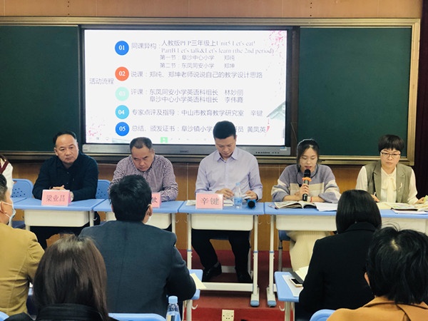 本次活动非常荣幸地邀请到中山市教育教学研究室小学英语教研员辛键老师亲临指导,阜沙镇教育和体育事务中心徐瑞钦副主任、小学英语教研员黄凤英校长、阜沙中心小学梁业昌校长、吴文海副校长,东凤镇同安小学黄炎友副校长,同安小学英语教师、阜沙镇各小学英语教师参与了本次活动。