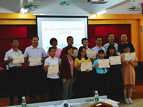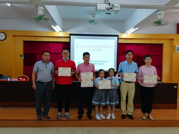 优秀自制教具展评,参照中山市评选标准,作品具有教学性,有利于实验教学、提高师生的实验动手能力;科学性,有利于学习科学知识,树立科学意识,掌握科学方法和实验操作技能;创新性,教具设计新颖,构思巧妙;实用性,取材容易,结构简单,易于操作,性能稳定,安全可靠;启发性,适于探究式教学,有利于学生主动参与、互动、合作交流。阜沙中心小学教师、学生积极参与,发挥团体力量,共同研究,创新思维,不断完善,由马成海、董夏、梁荣佳、林志能、梁凯文等师生打造作品参加比赛。